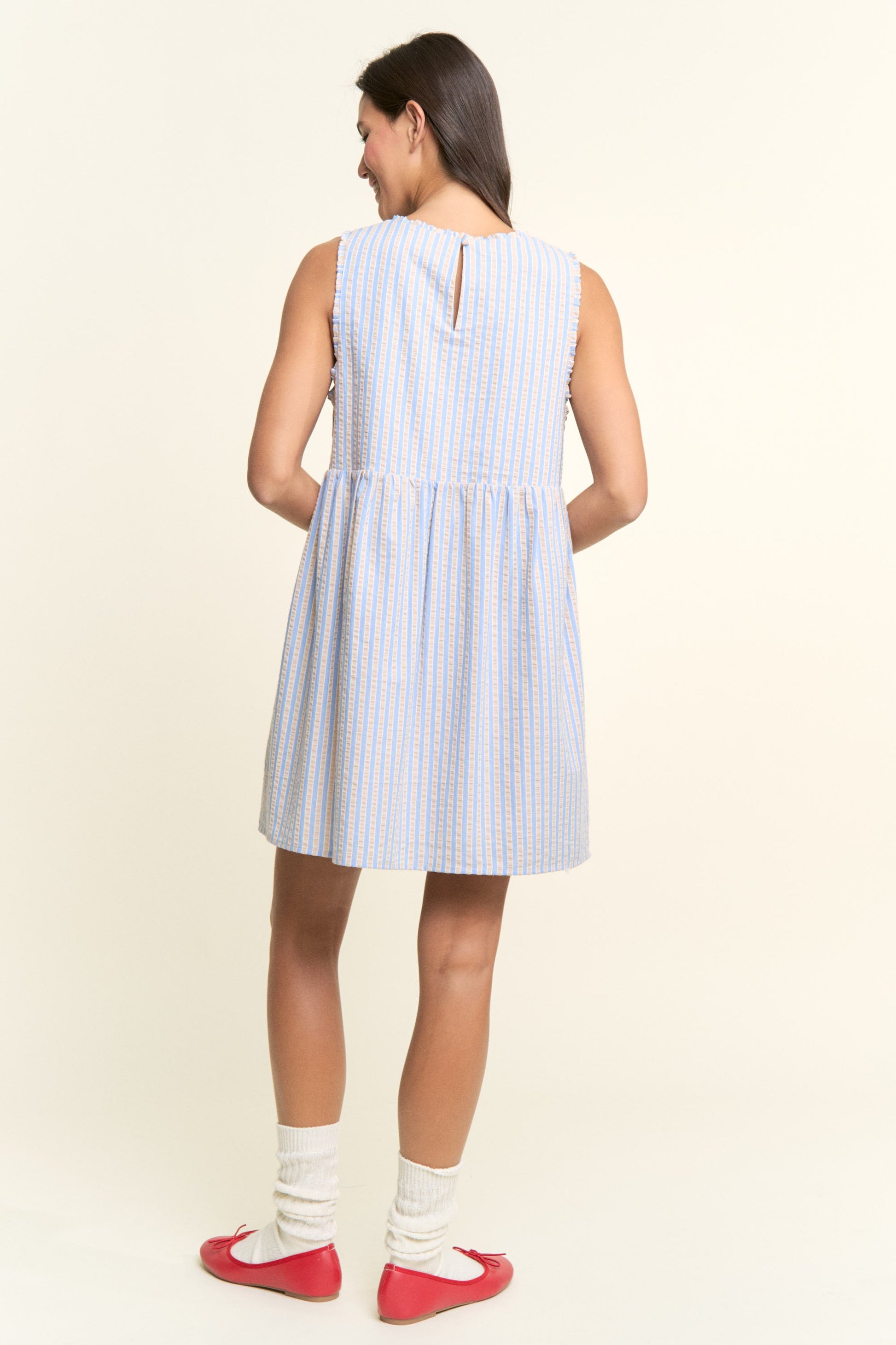 Lightweight mini dress with vertical stripes.